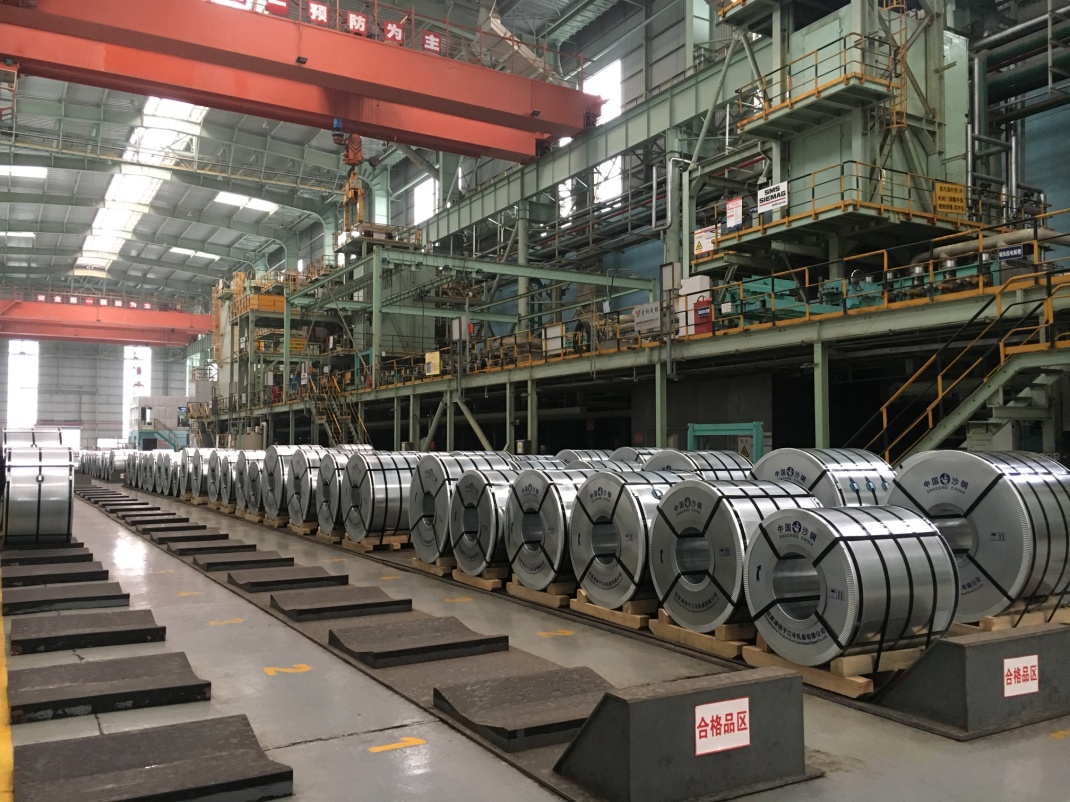 成品區(qū) 碼放得整整齊齊的鍍鋅卷成品,展現(xiàn)了沙鋼嚴(yán)謹(jǐn)?shù)墓ぷ骶瘛?